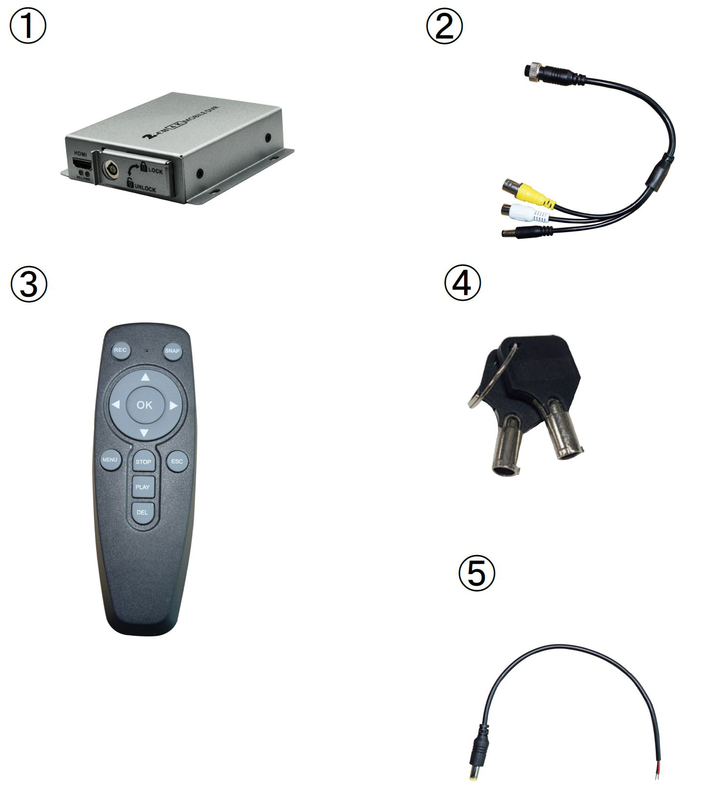 YKS-SD2CHMBは通常の監視用録画装置と同様にご使用いただくことができ、映像出力にはCVBS(アナログ)の他、1920×1080表示が可能なHDMI出力にも対応し、大画面モニターと接続することで、高精細映像でのモニタリングが可能です。モニタリング時には単画面表示だけでなく、2分割表示にも対応し、2台の防犯カメラ映像を一画面で確認することができます。各操作は本体には操作パネルは備えておらず、すべて付属の赤外線リモコンで行います。