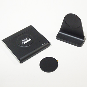 HS-400FHDには本体背面にマグネットが備わっており、卓上スタンドとはマグネットによる固定を行います。マグネット式なので本体とスタンドは簡単に分離ができます。また、付属品としてマグネット式の壁面設置プレートが2枚付属し、冷蔵庫等の金属部へHS-400FHDを設置することもできます。