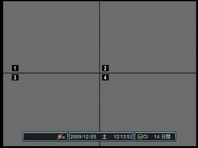 画面表示は4分割、各1画面、全画面シーケンシャル表示(自動画面切替)が可能です。