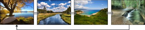 画面1~9チャンネルのみの自動切換え 分割画面(4A,4B,4C,9)のみの自動切換え 単画面,分割画面のミックス 各画面ごとに0~99(秒)の表示時間を設定可 |