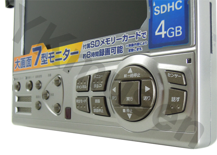 7インチ液晶モニターに受信機と手動・動体検知録画に対応したSDカードレコーダーを搭載